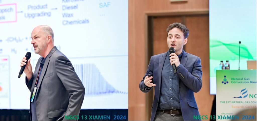 E-TANDEM researchers Prof. Michael Claeys (University of Cape Town, South Africa) and Prof. Gonzalo Prieto (Institute for Chemical Technology (CSIC), Valencia, Spain), the E-TANDEM project coordinator, were invited to lecture at the 13th NGCS meeting held in Xiamen, China, in April 2024. This meeting brought together more than 800 participants representing over 220 industrial and academic institutions from around the globe. This prestigious triennial conference series has served for nearly 40 years as a prime forum to discuss advances in the valorization of C1 unconventional feedstocks, such as methane and CO2, into valuable energy carriers and chemicals. Claeys and Prieto presented recent developments in their teams on the (tandem) catalytic conversion of syngas to high-performance e-fuels. The Horizon Europe E-TANDEM project develops innovative hybrid catalytic routes to produce higher oxygenate compounds as advanced liquid e-fuels for hard-to-abate transport sectors, such as waterborne transport.